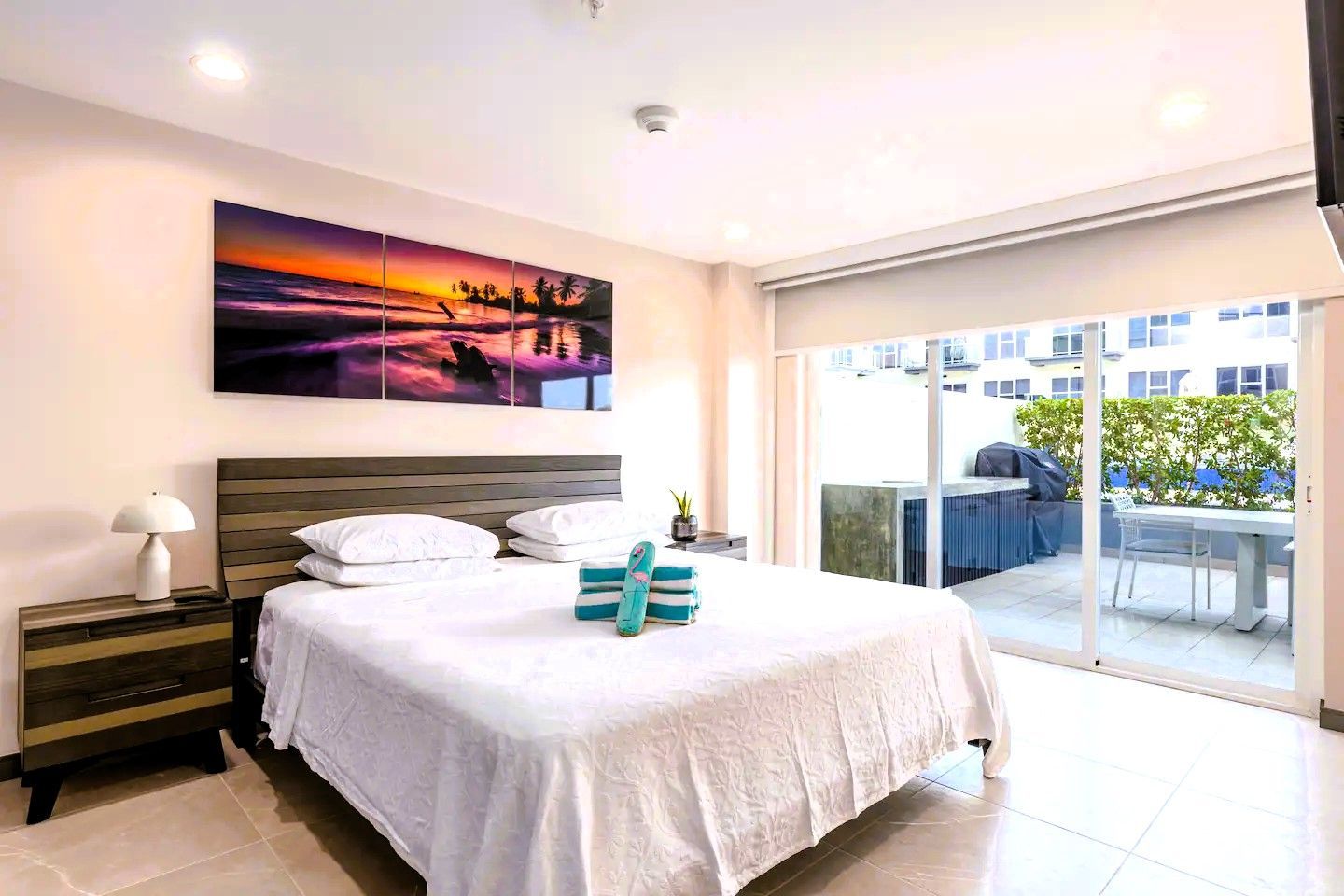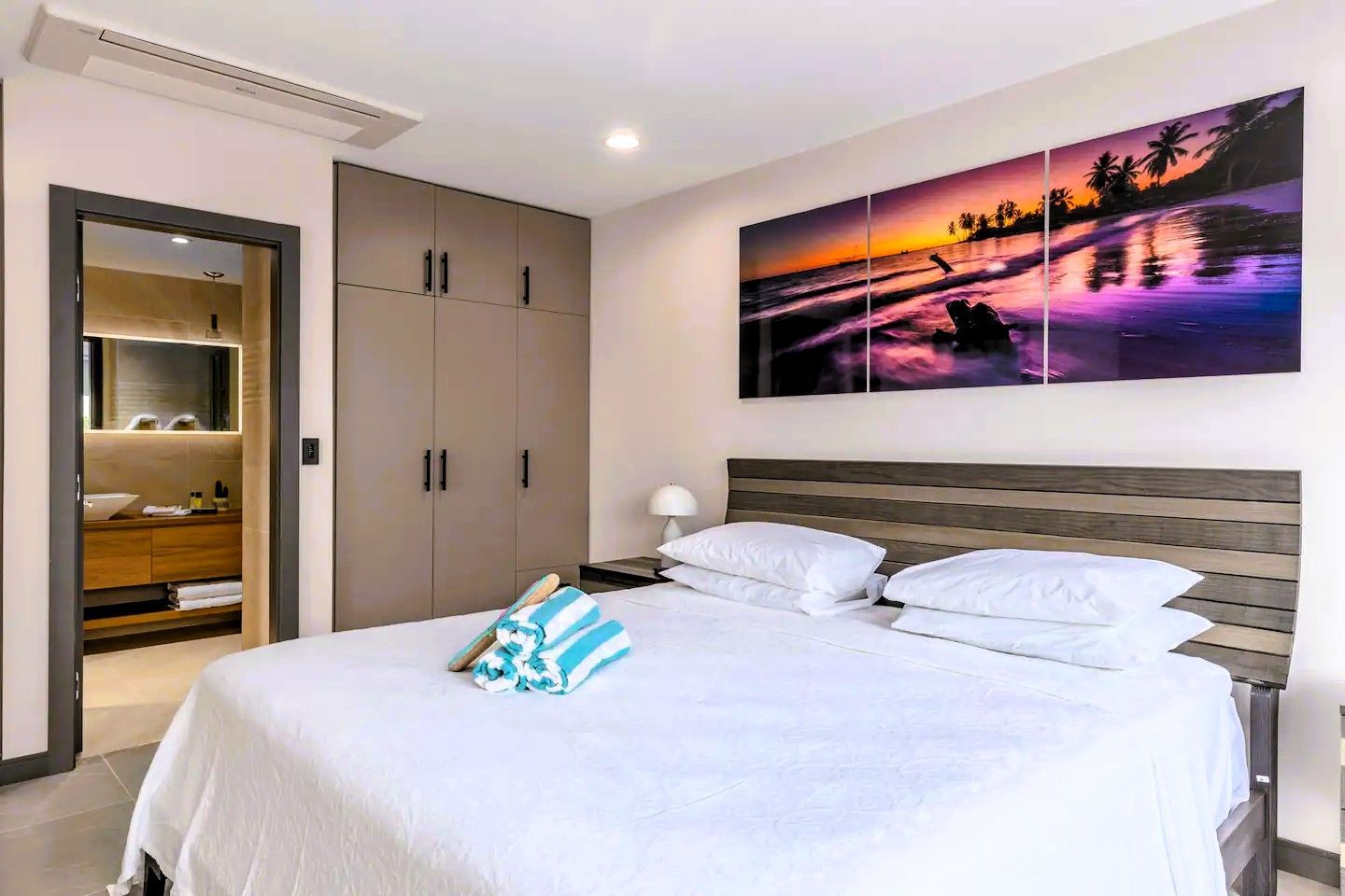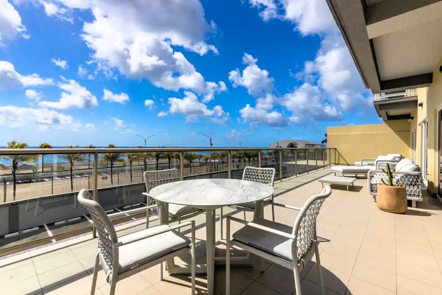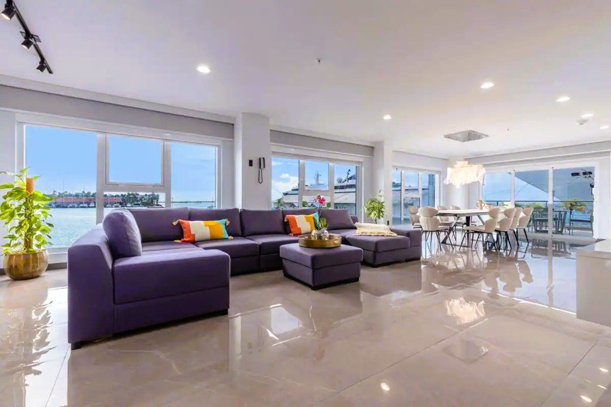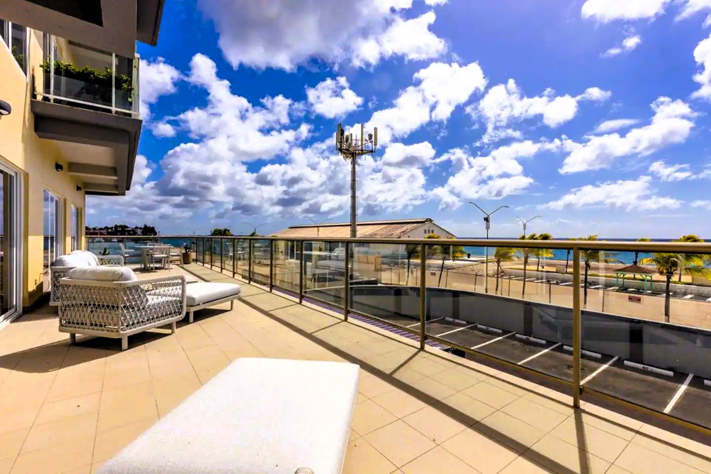 Prepare to be amazed! Four Winds Offers plenty of room to spread out and relax, making it the perfect base camp for your Aruban adventure. It boasts incredible ocean views from two private, spacious terraces ideal for family BBQs. The living area is a generous 2000 sf, providing ample space for everyone to unwind. This fully air-conditioned three-bedroom apartment offers everything you need. It features three King beds and a large sofa bed.